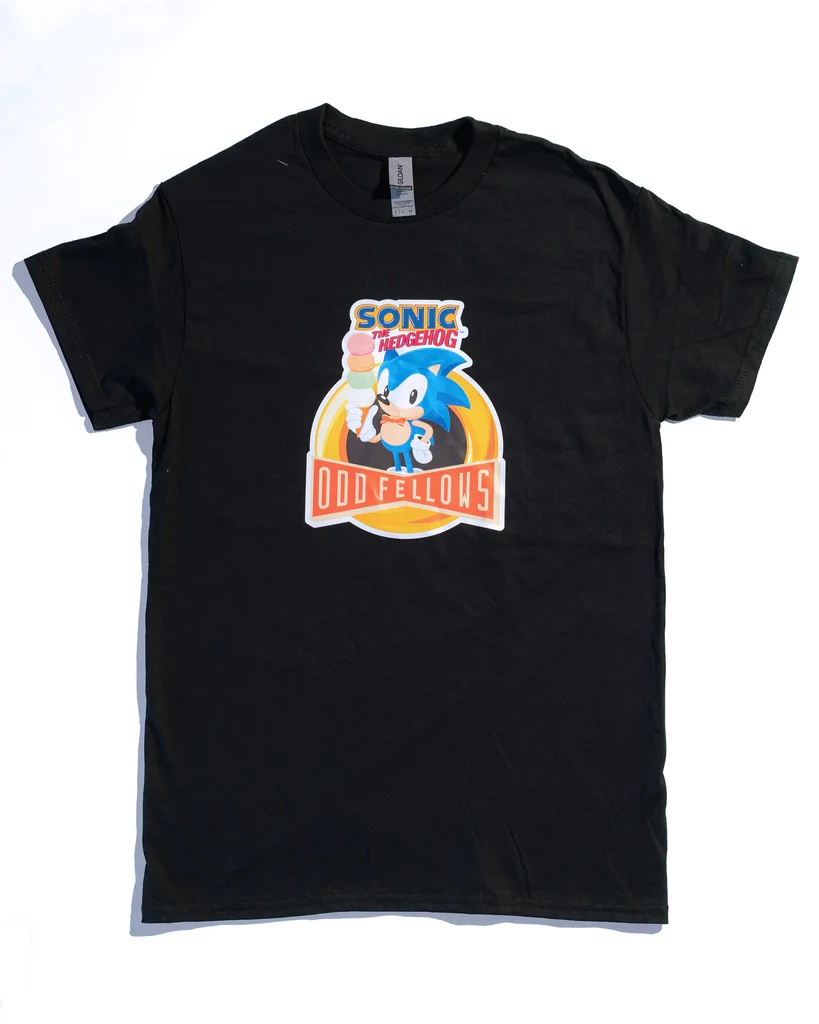 Along with these various ice creams, OddFellows is also selling merchandise branded with its name and the Sonic crew. There are two t-shirts, a sticker sheet, and a baseball cap (which is currently sold out).
