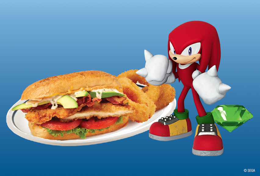 - Knuckles’ Chicken Sandwich: A crispy chicken sandwich with bacon, lettuce, tomato, avocado, cheese & buttermilk ranch that won’t leave you hungry. Order with a side of “gold” onion rings.