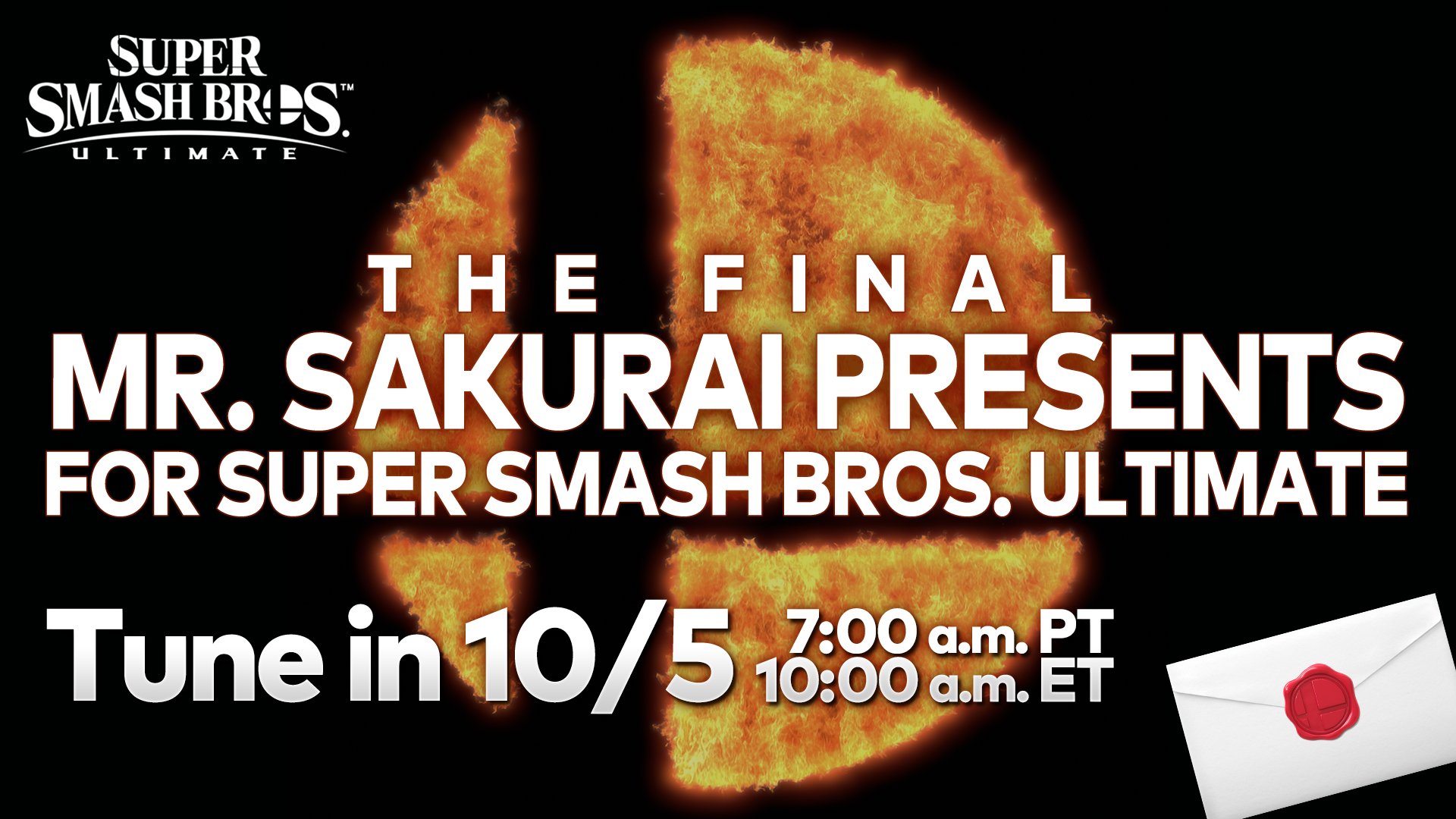 This is it. After multiple additions and broadcasts, after years of waiting, the final addition to the Super Smash Bros. Ultimate roster is about to be revealed. The last Mr. Sakurai Presents broadcast is slated for October 5. It will air at 7 AM PST.