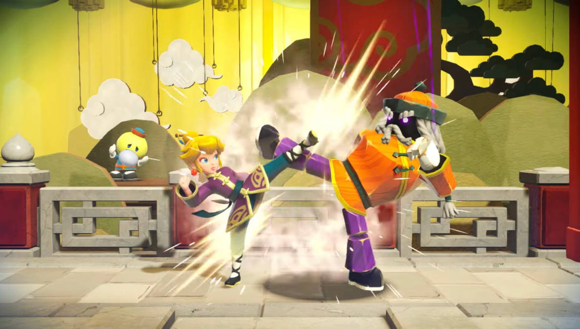 All of Peach’s combat transformations fight differently, with the Ninja using kunai for fast dash attacks, the Kung Fu fighter using fists and kicks, the Swordfighter wielding a rapier, and Mighty in a mech-inspired costume that gives Peach super strength and flight abilities. The stages that focused on these transformations were the most interesting and fun to play. The non-combat stages were somewhat boring, simple, and felt a bit half-baked, especially the Figure Skater — just jump and spin on the ice at the right time.