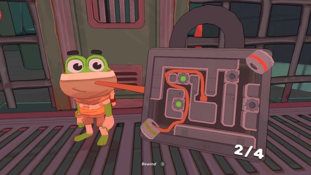 My only issue really is the motion, as I get a bit nauseous if I play too long. I did adjust the camera to move a bit slower, but too slow and I feel like I can’t keep up with Hop’s pace. I noticed a little later there is a motion sickness reduce setting but I haven’t noticed much of a difference. Just wanted to include this in case anyone else struggles with it. Aside from that, I love the movement mechanics! Since this is a 3D platformer, there are a lot of parkour opportunities for jump combinations as well as using your frog-tongue to maneuver across gaps. I have had no performance issues such as lagging, and the game has not crashed on me either. I know their target launch consoles are the Switch and Switch 2, which I think are perfect for this game.